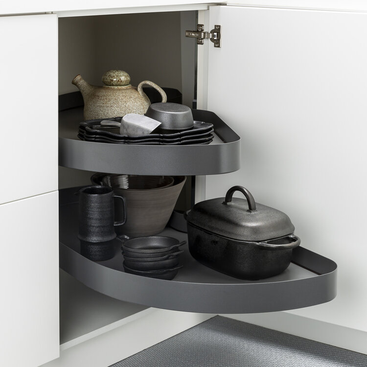 Uttrekkbar grå innredning for hjørne, dørbredde 594 mm høyre